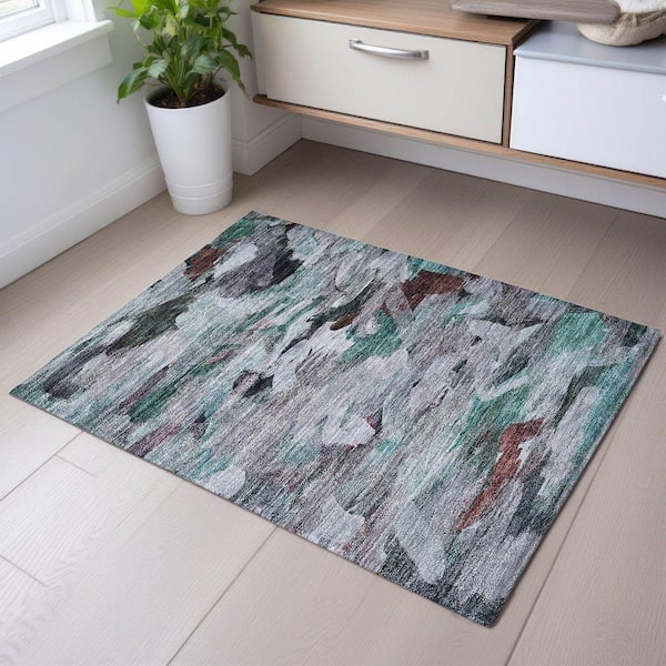 Mayfield Premium Machine Washable Abstract AMF1075 Teal 2 ft. x 3 ft. Area Rug