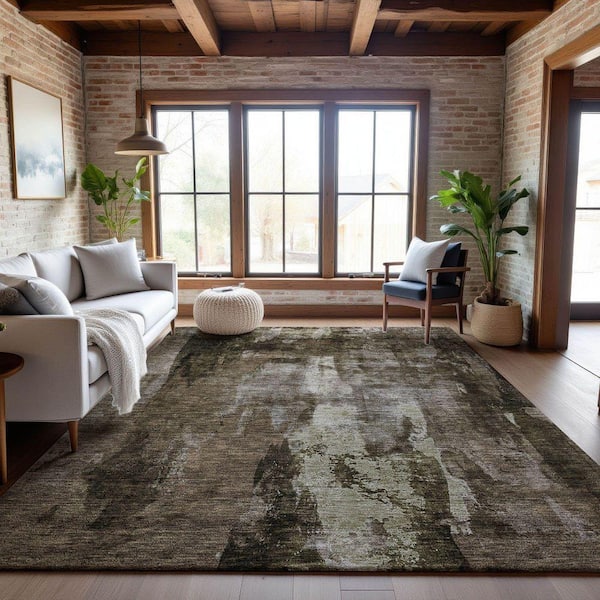 Mayfield Premium Machine Washable Abstract AMF1077 Brown 10 ft. x 14 ft. Area Rug