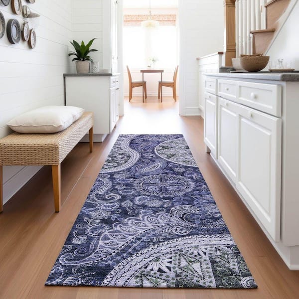 Mayfield Premium Machine Washable Abstract AMF1078 Navy 2 ft. 3 in. x 7 ft. 6 in. Runner Rug
