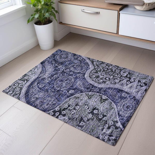 Mayfield Premium Machine Washable Abstract AMF1078 Navy 2 ft. x 3 ft. Area Rug