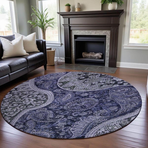 Mayfield Premium Machine Washable Abstract AMF1078 Navy 8 ft. x 8 ft. Round Rug