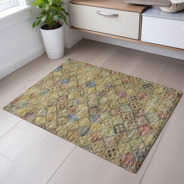 Mayfield Premium Machine Washable Abstract AMF1081 Gold 2 ft. x 3 ft. Area Rug