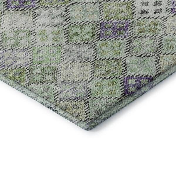 Mayfield Premium Machine Washable Abstract AMF1081 Green 8 ft. x 8 ft. Round Rug