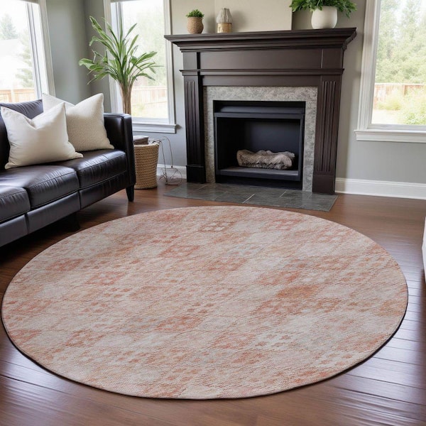 Mayfield Premium Machine Washable Abstract AMF1081 Pink 8 ft. x 8 ft. Round Rug