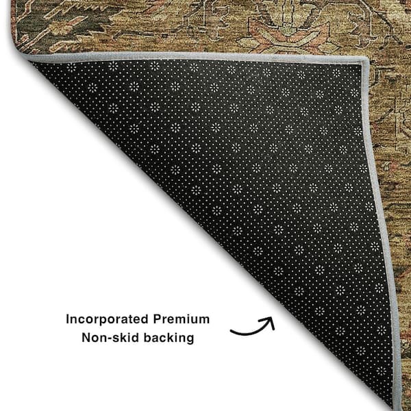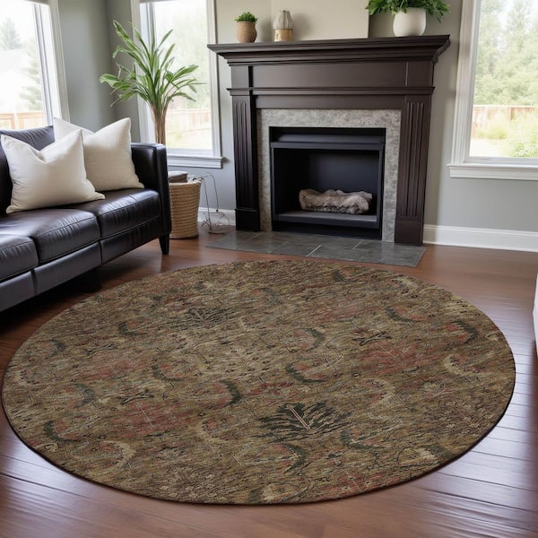 Mayfield Premium Machine Washable Abstract AMF1082 Brown 8 ft. x 8 ft. Round Rug