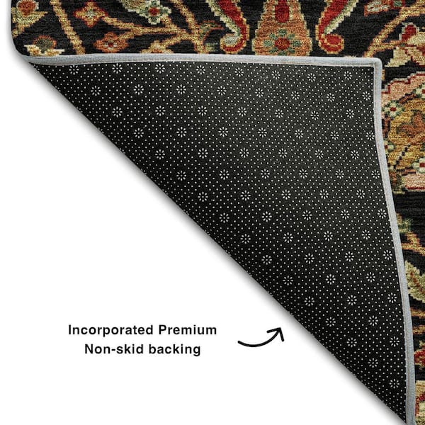 Mayfield Premium Machine Washable Abstract AMF1085 Black 8 ft. x 8 ft. Round Rug