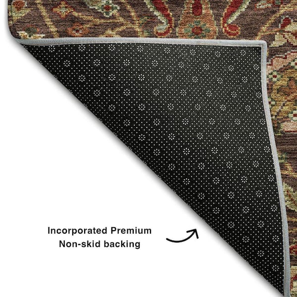 Mayfield Premium Machine Washable Abstract AMF1085 Chocolate 8 ft. x 8 ft. Round Rug