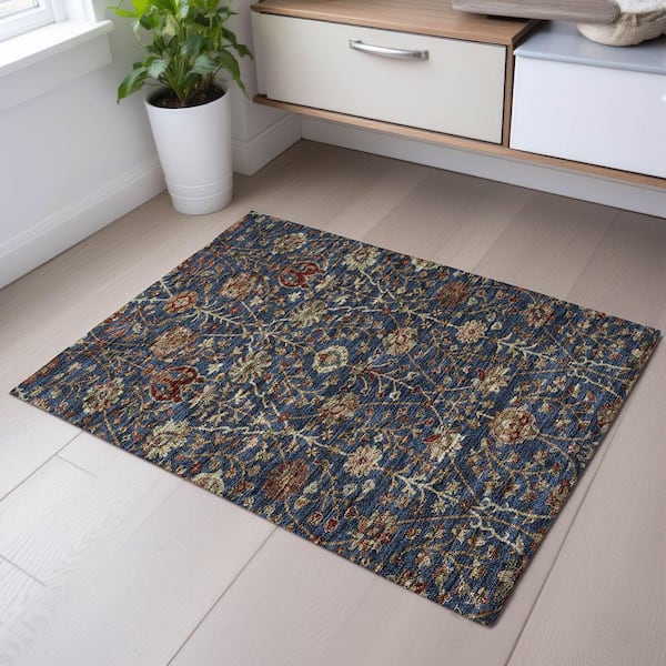 Mayfield Premium Machine Washable Abstract AMF1085 Navy 2 ft. x 3 ft. Area Rug