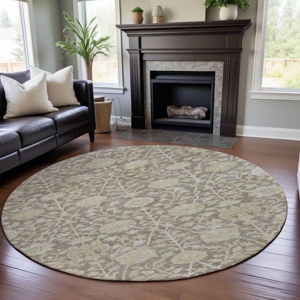 Mayfield Premium Machine Washable Abstract AMF1086 Mocha 8 ft. x 8 ft. Round Rug
