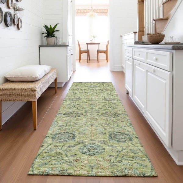Mayfield Premium Machine Washable Abstract AMF1087 Mint 2 ft. 3 in. x 7 ft. 6 in. Runner Rug