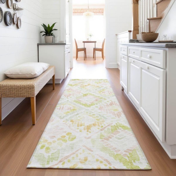 Mayfield Premium Machine Washable Abstract AMF1088 Pink 2 ft. 3 in. x 7 ft. 6 in. Runner Rug