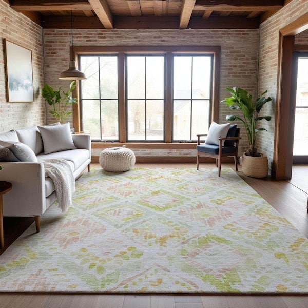 Mayfield Premium Machine Washable Abstract AMF1088 Pink 5 ft. x 7 ft. 6 in. Area Rug