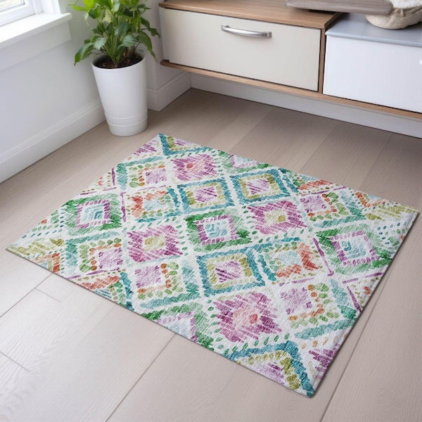 Mayfield Premium Machine Washable Abstract AMF1088 Teal 2 ft. x 3 ft. Area Rug