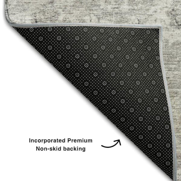 Mayfield Premium Machine Washable Abstract AMF1089 Gray 8 ft. x 8 ft. Round Rug