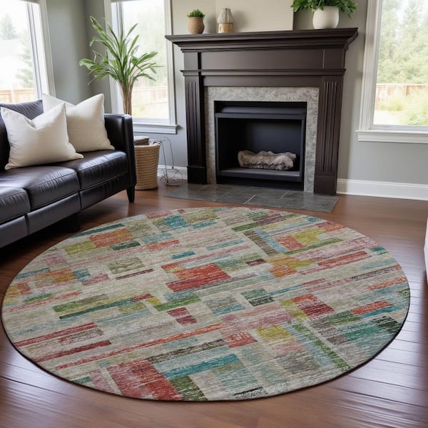 Mayfield Premium Machine Washable Abstract AMF1090 Paprika 8 ft. x 8 ft. Round Rug