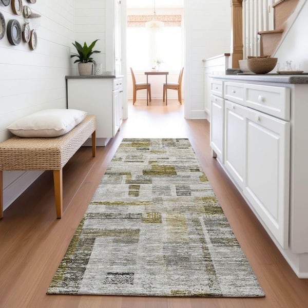 Mayfield Premium Machine Washable Abstract AMF1090 Taupe 2 ft. 3 in. x 7 ft. 6 in. Runner Rug