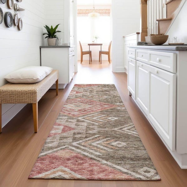 Mayfield Premium Machine Washable Abstract AMF1091 Brown 2 ft. 3 in. x 7 ft. 6 in. Runner Rug