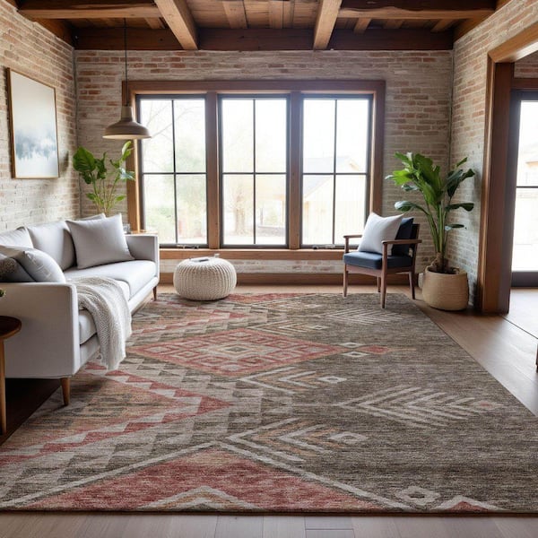 Mayfield Premium Machine Washable Abstract AMF1091 Brown 5 ft. x 7 ft. 6 in. Area Rug