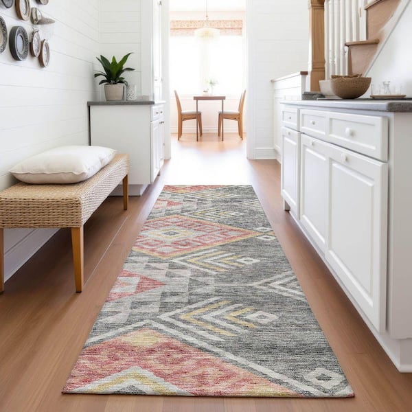 Mayfield Premium Machine Washable Abstract AMF1091 Gray 2 ft. 3 in. x 7 ft. 6 in. Runner Rug