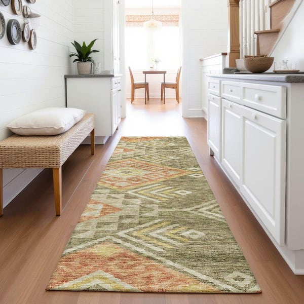 Mayfield Premium Machine Washable Abstract AMF1091 Green 2 ft. 3 in. x 7 ft. 6 in. Runner Rug