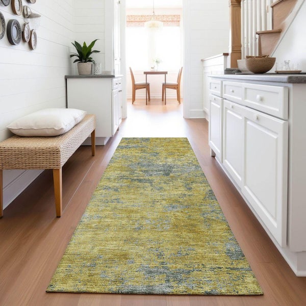 Mayfield Premium Machine Washable Abstract AMF1093 Gold 2 ft. 3 in. x 7 ft. 6 in. Runner Rug