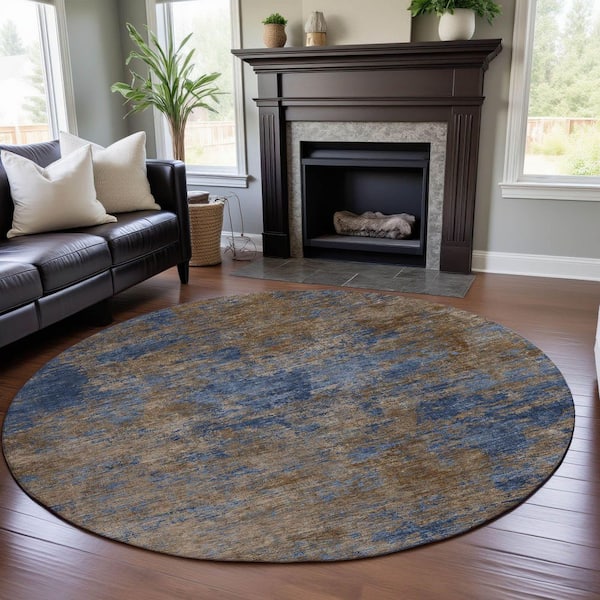 Mayfield Premium Machine Washable Abstract AMF1093 Navy 8 ft. x 8 ft. Round Rug