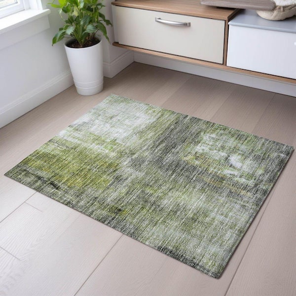Mayfield Premium Machine Washable Abstract AMF1095 Aloe 2 ft. x 3 ft. Area Rug