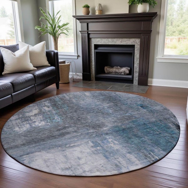 Mayfield Premium Machine Washable Abstract AMF1095 Blue 8 ft. x 8 ft. Round Rug