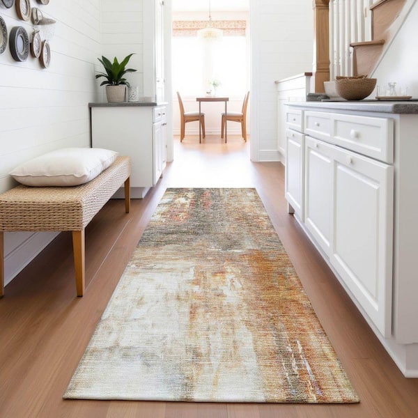 Mayfield Premium Machine Washable Abstract AMF1095 Copper 2 ft. 3 in. x 7 ft. 6 in. Runner Rug