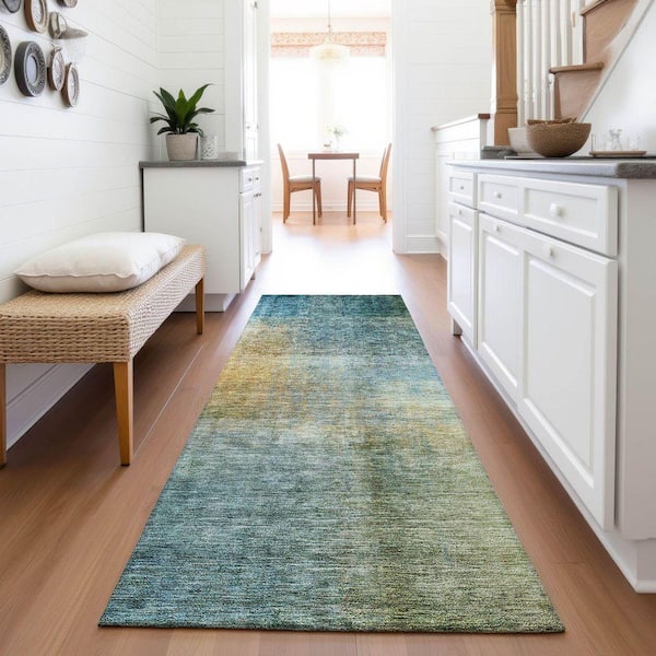 Mayfield Premium Machine Washable Abstract AMF1096 Blue 2 ft. 3 in. x 7 ft. 6 in. Runner Rug
