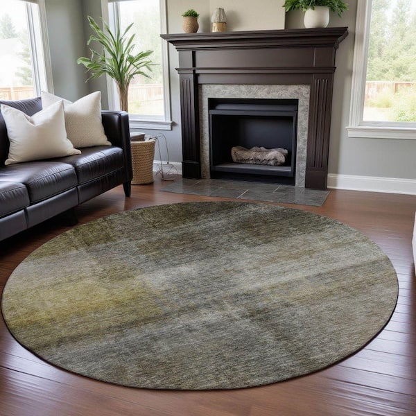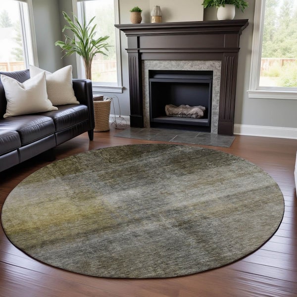 Mayfield Premium Machine Washable Abstract AMF1096 Taupe 8 ft. x 8 ft. Round Rug