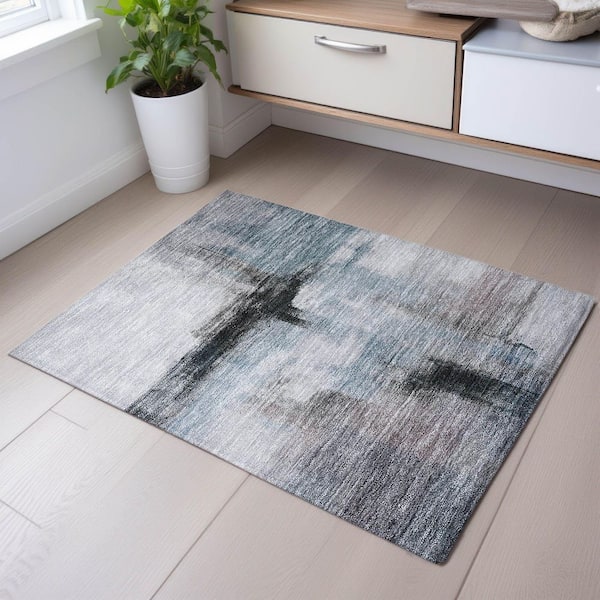 Mayfield Premium Machine Washable Abstract AMF1097 Blue 2 ft. x 3 ft. Area Rug