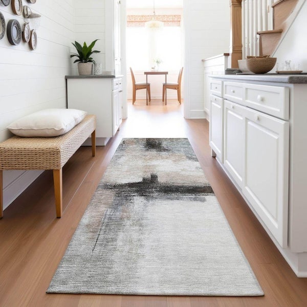 Mayfield Premium Machine Washable Abstract AMF1097 Mocha 2 ft. 3 in. x 7 ft. 6 in. Runner Rug