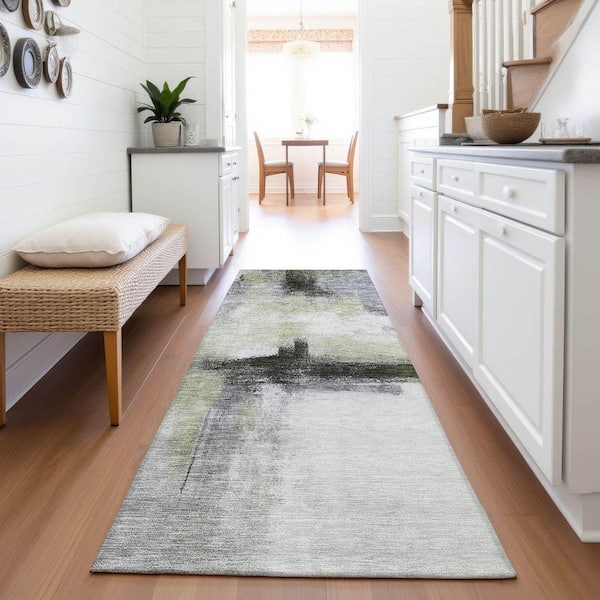 Mayfield Premium Machine Washable Abstract AMF1097 Sage 2 ft. 3 in. x 7 ft. 6 in. Runner Rug