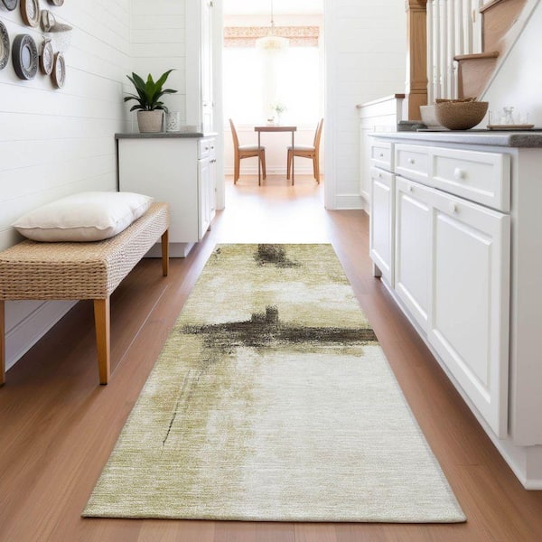 Mayfield Premium Machine Washable Abstract AMF1097 Wheat 2 ft. 3 in. x 7 ft. 6 in. Runner Rug