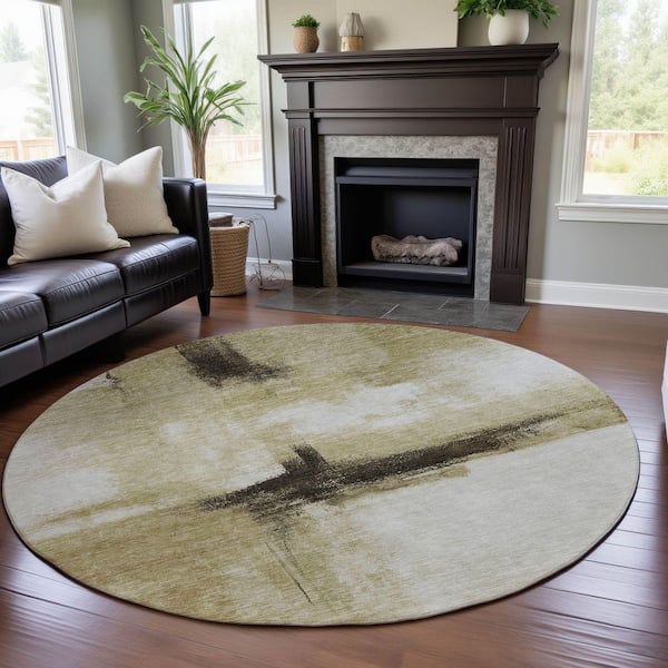 Mayfield Premium Machine Washable Abstract AMF1097 Wheat 8 ft. x 8 ft. Round Rug