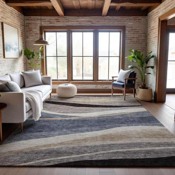 Mayfield Premium Machine Washable Abstract AMF1098 Blue 3 ft. x 5 ft. Area Rug