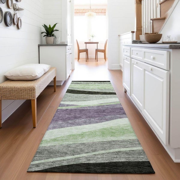 Mayfield Premium Machine Washable Abstract AMF1098 Purple 2 ft. 3 in. x 7 ft. 6 in. Runner Rug