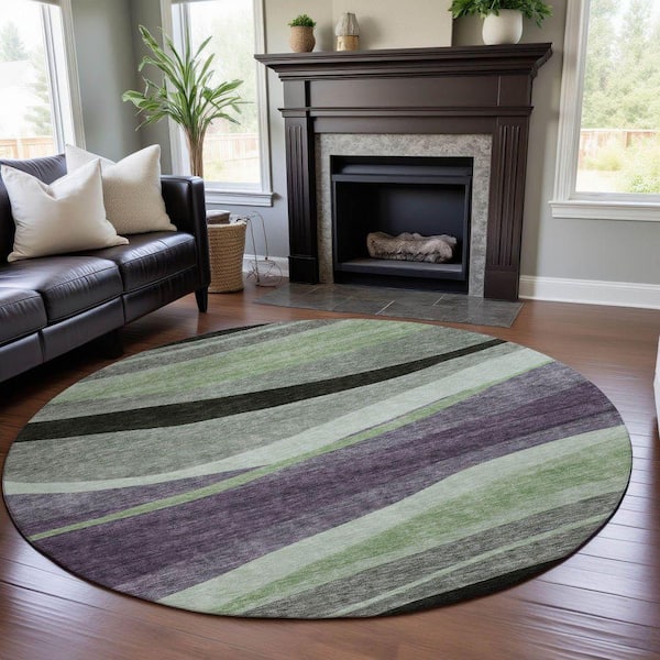 Mayfield Premium Machine Washable Abstract AMF1098 Purple 8 ft. x 8 ft. Round Rug