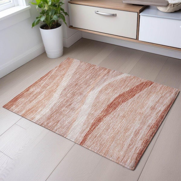 Mayfield Premium Machine Washable Abstract AMF1099 Salmon 2 ft. x 3 ft. Area Rug