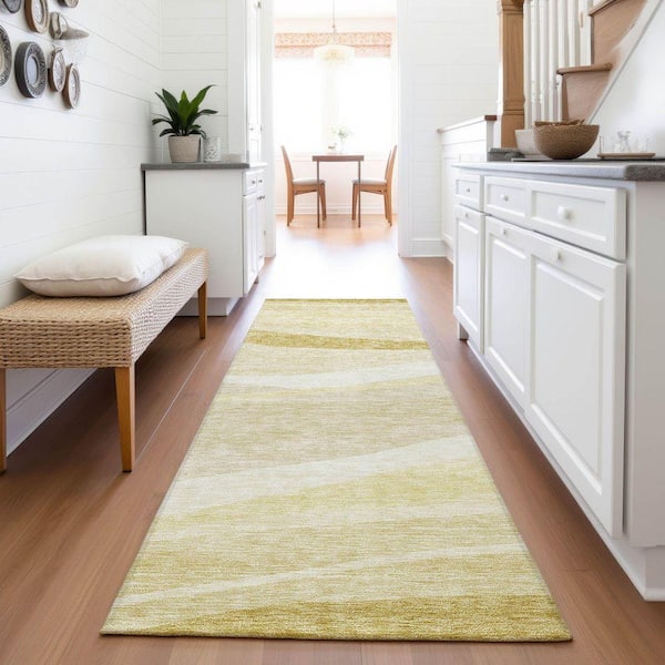 Mayfield Premium Machine Washable Abstract AMF1099 Wheat 2 ft. 3 in. x 7 ft. 6 in. Runner Rug