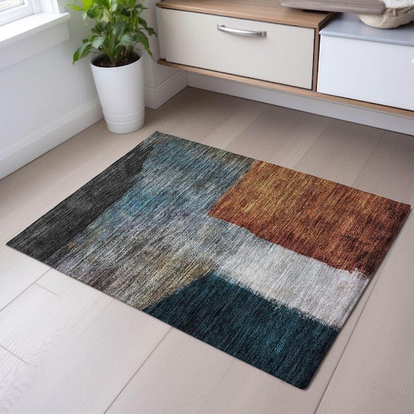 Mayfield Premium Machine Washable Abstract AMF1100 Copper 2 ft. x 3 ft. Area Rug