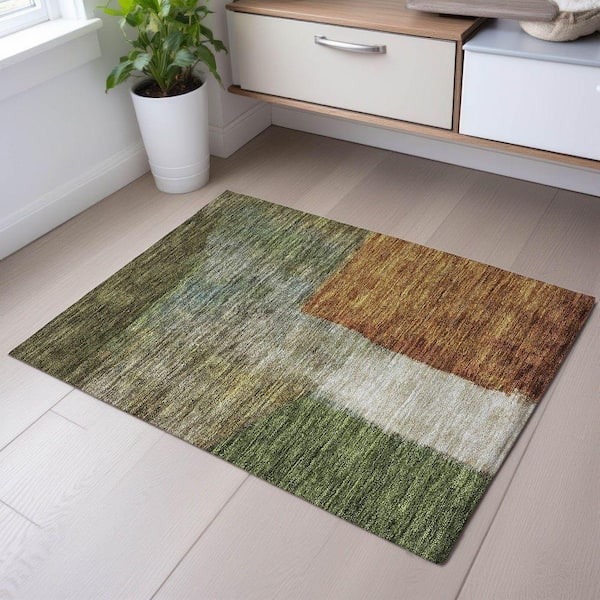 Mayfield Premium Machine Washable Abstract AMF1100 Green 2 ft. x 3 ft. Area Rug