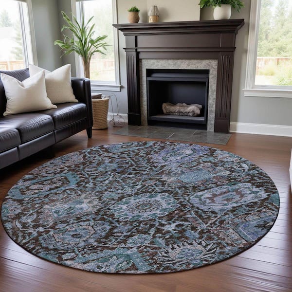 Mayfield Premium Machine Washable Abstract AMF1101 Chocolate 8 ft. x 8 ft. Round Rug