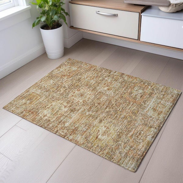 Mayfield Premium Machine Washable Abstract AMF1101 Khaki 2 ft. x 3 ft. Area Rug