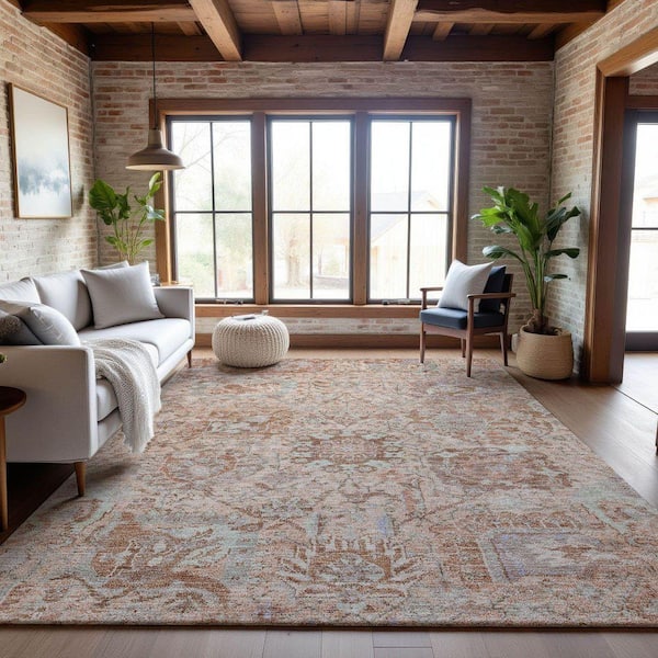 Mayfield Premium Machine Washable Abstract AMF1102 Coral 5 ft. x 7 ft. 6 in. Area Rug