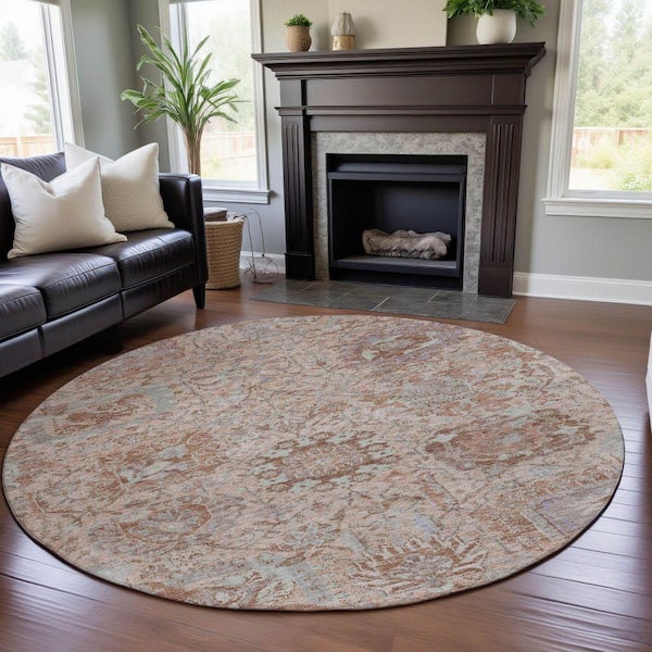 Mayfield Premium Machine Washable Abstract AMF1102 Coral 8 ft. x 8 ft. Round Rug