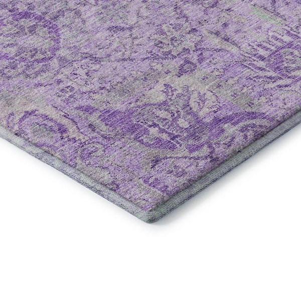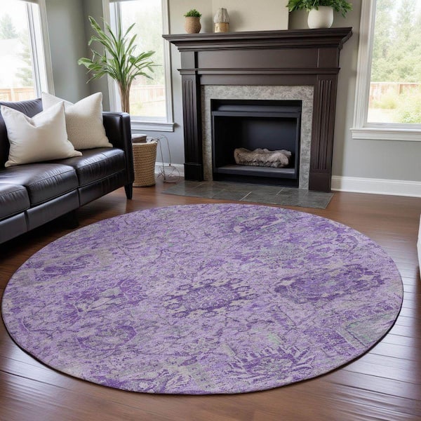 Mayfield Premium Machine Washable Abstract AMF1102 Lavender 8 ft. x 8 ft. Round Rug