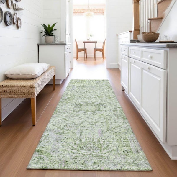 Mayfield Premium Machine Washable Abstract AMF1102 Mint 2 ft. 3 in. x 7 ft. 6 in. Runner Rug