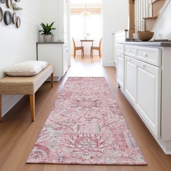 Mayfield Premium Machine Washable Abstract AMF1102 Pink 2 ft. 3 in. x 7 ft. 6 in. Runner Rug